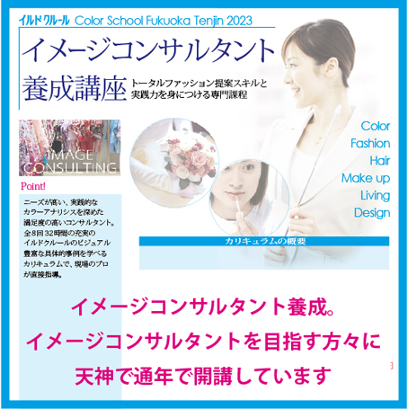 の年間を通じてご要望の高い、イメージコンサル実務と情報を現場のプロからダイレクトに学べ身に付けることができるの実務集中クラスの開講情報です。