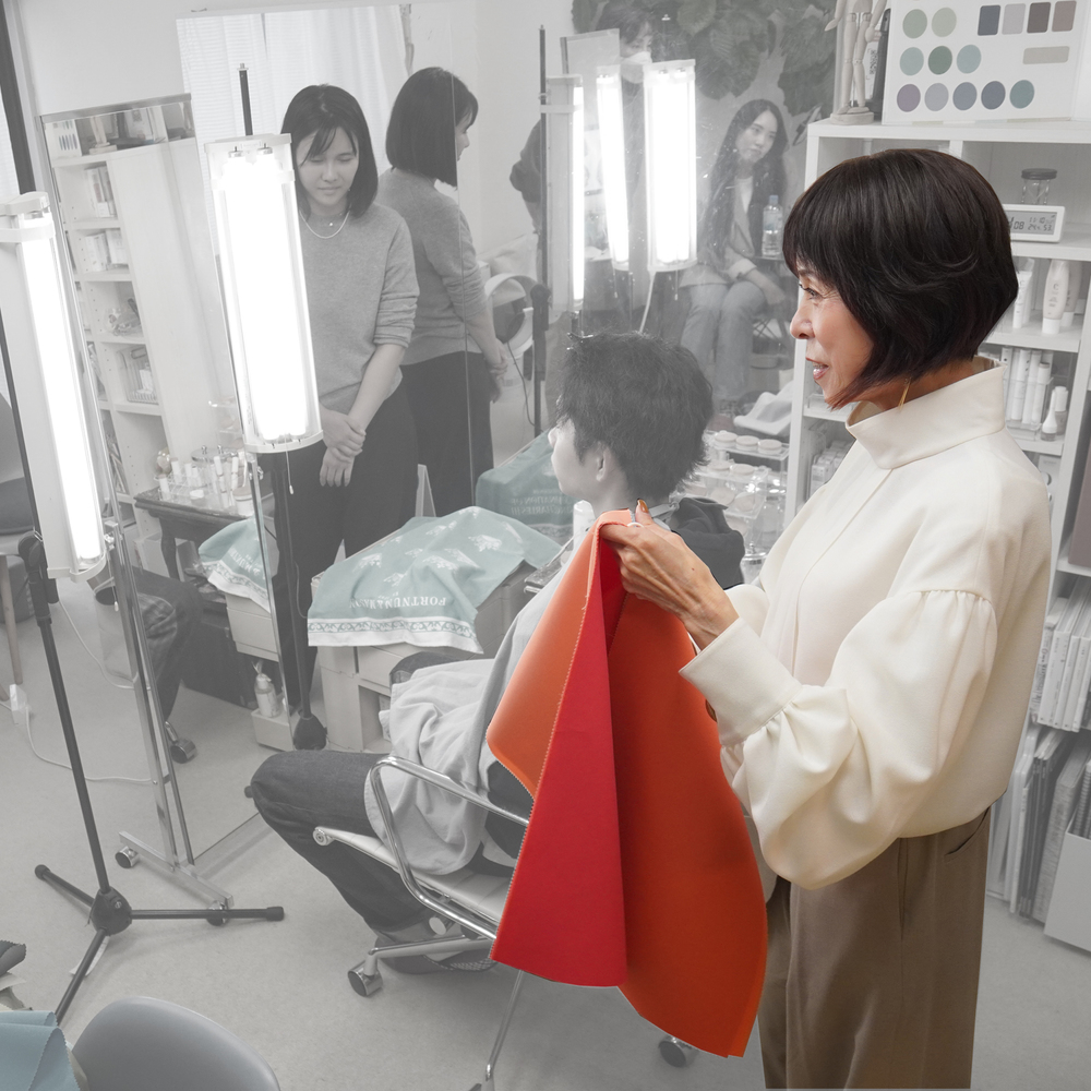 標準光を使ってパーソナルカラーを判定できる理論と技術を専門的に学びます。カラーリスト志望の方がほとんどですが、実践的に学べるので理美容業界など他業種からの受講が増えています。