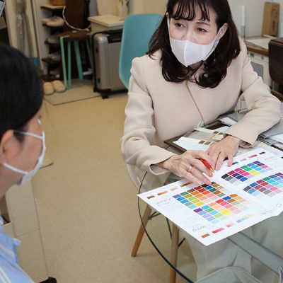 色が正しく見える標準光を使ったカラー診断結果(個性の色の分析)をもとに、メイクやヘアー、ファッションスタイルまでご要望に応じてトータルに具体的にご納得がいくまでその活用法をご提案を致します。