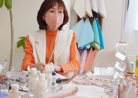 おひとりおひとりの個性に合わせたベストメイクを、ご自分でできるようにご指導いたします。ご希望があれば、ご自身のメイク道具もご使用いただけます。